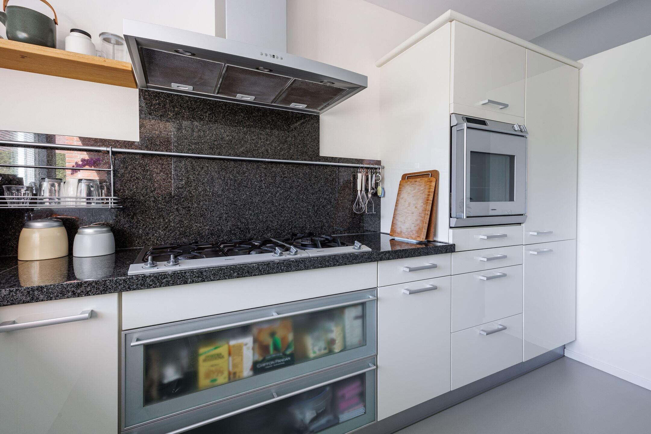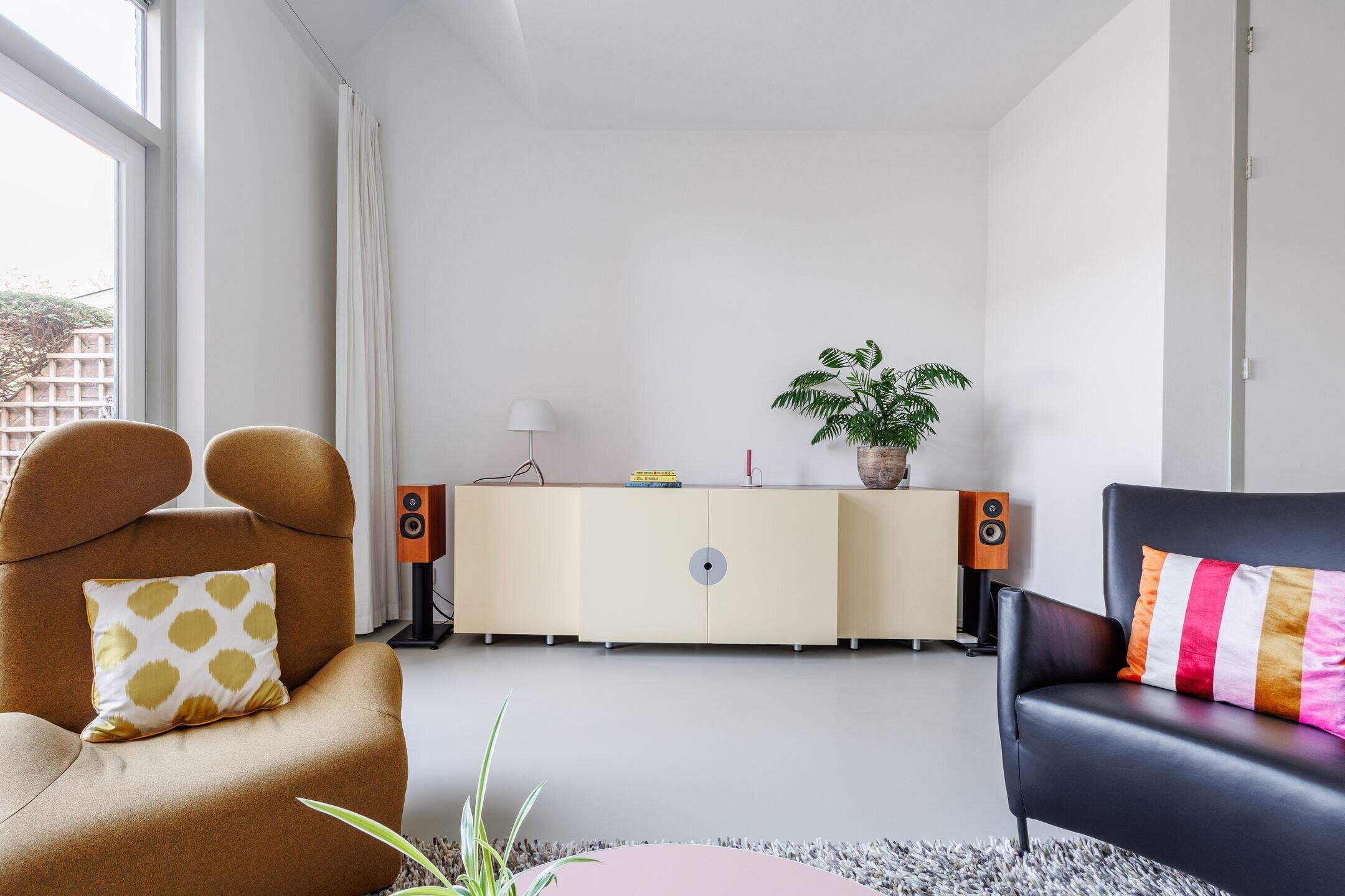 • Moderne fraaie afwerking op de begane grond, met gietvloer, glazen tussendeur, gestucte wanden en plafonds;