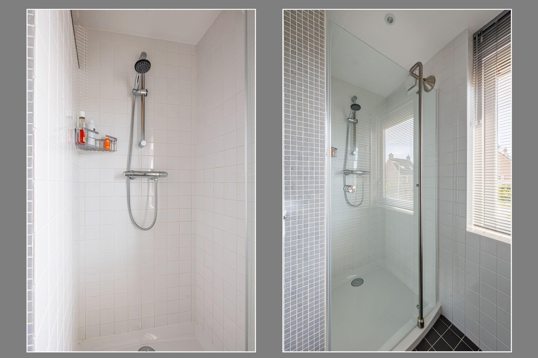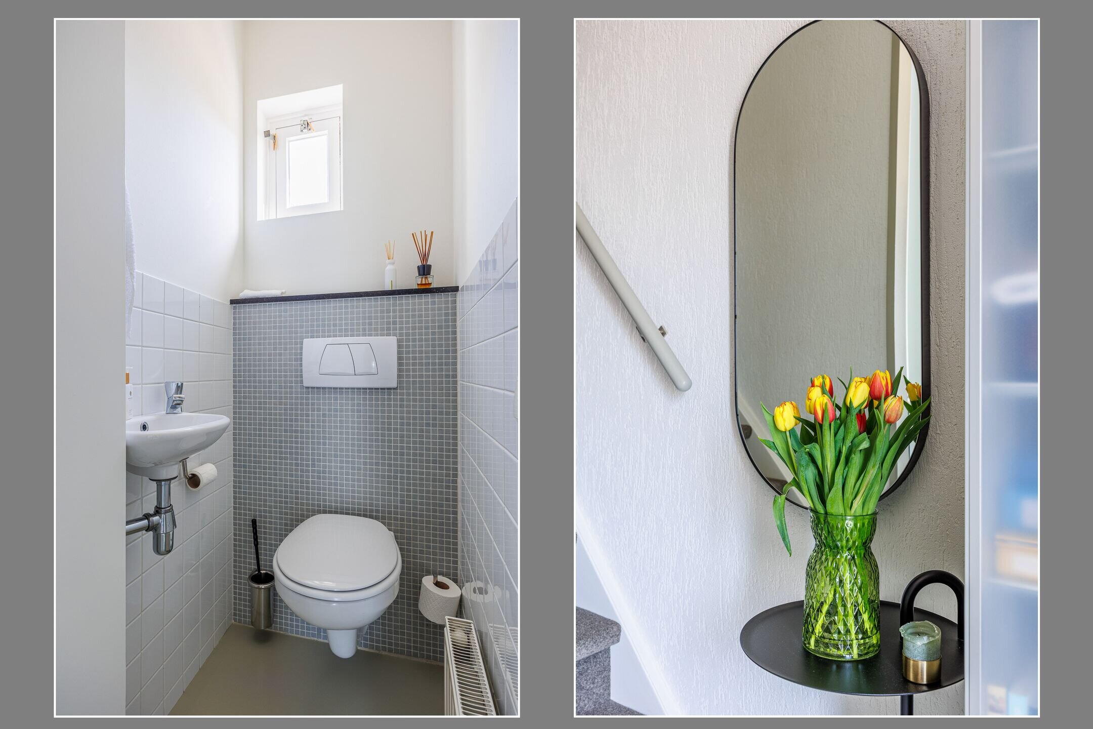 Op de eerste verdieping bevinden zich drie comfortabele slaapkamers. Daarnaast is er een berging met wasmachineaansluiting en een nette, lichte badkamer voorzien van een douche, wastafel en toilet.