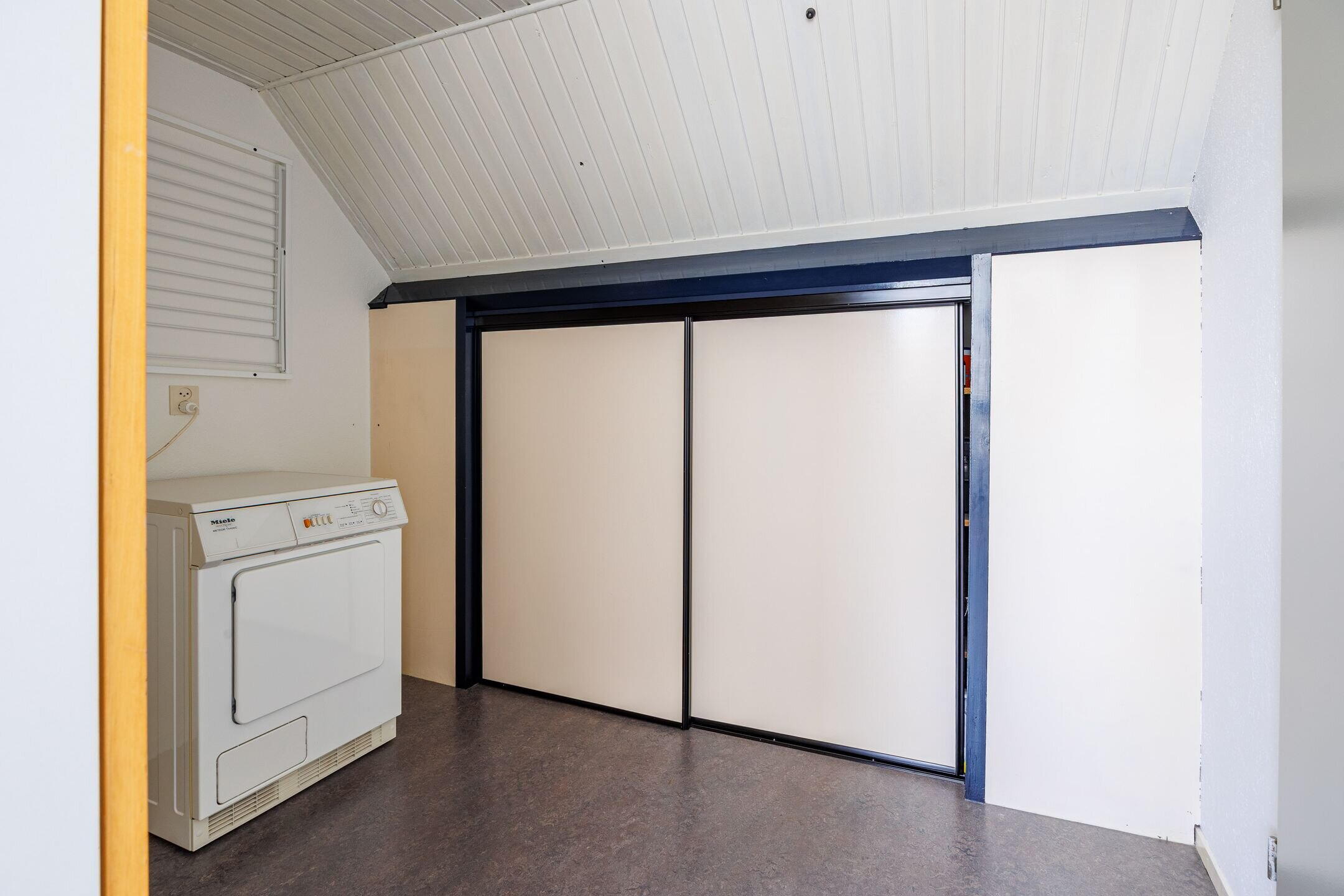 Overloop en toegang tot een inloopkamer met kasten, toegang naar de 4e slaapkamer met dakterras. Op deze verdieping is ook een bergingskast aanwezig waarin de CV-ketel zich bevindt.