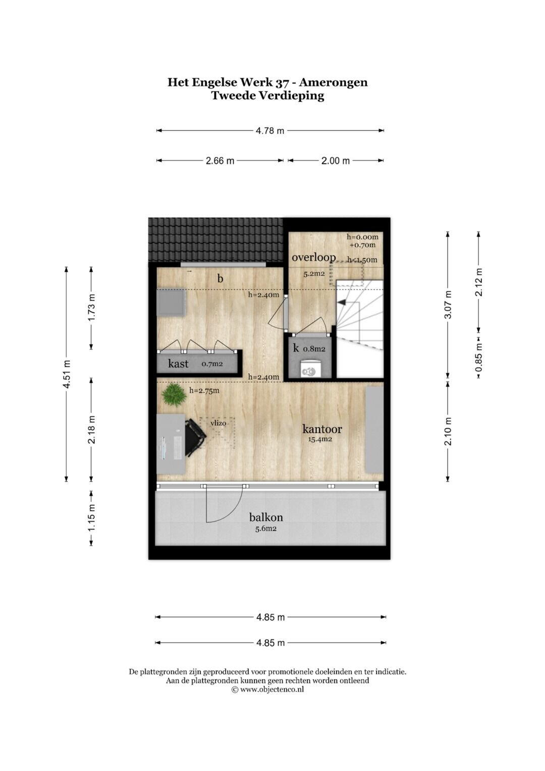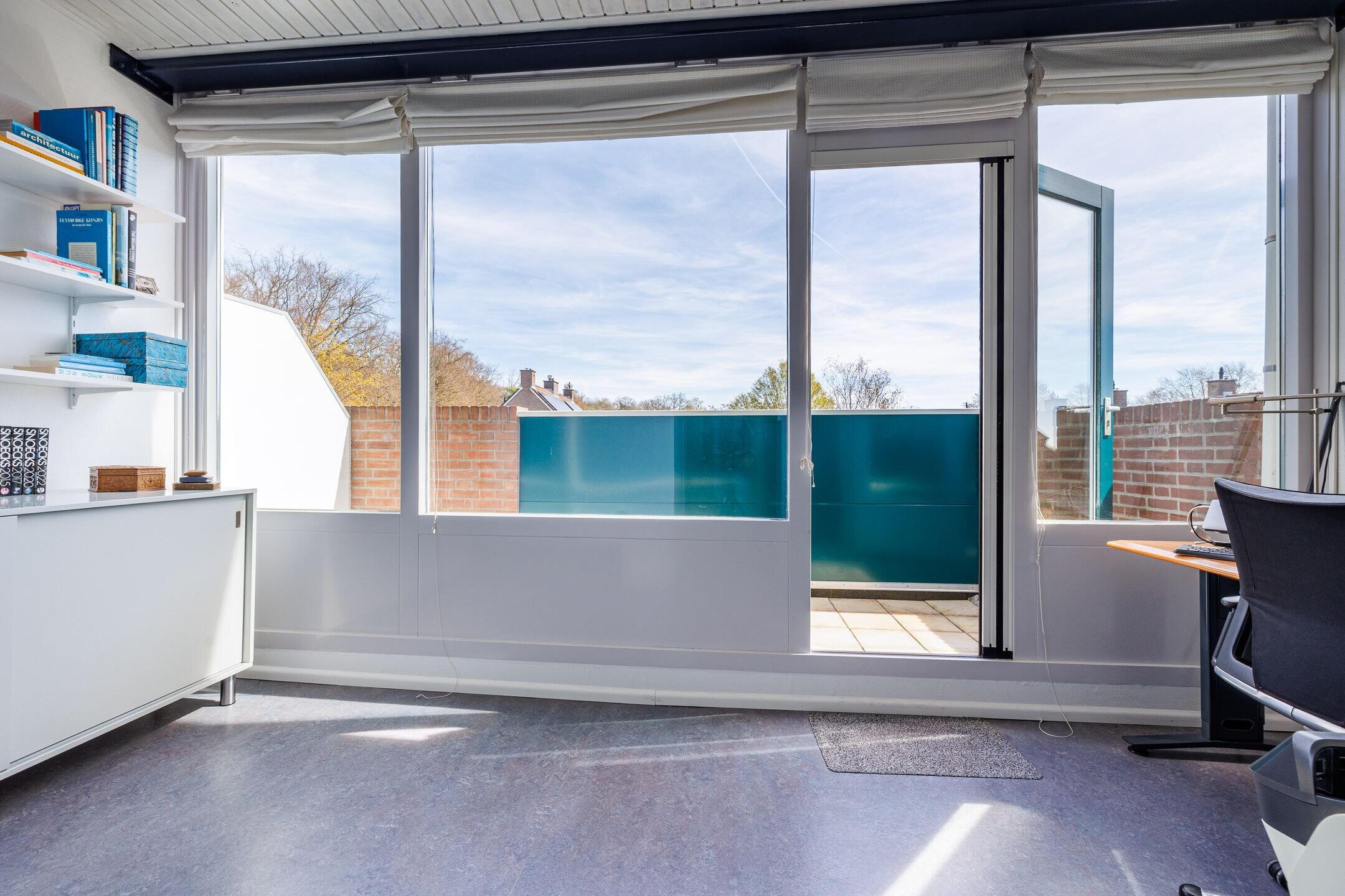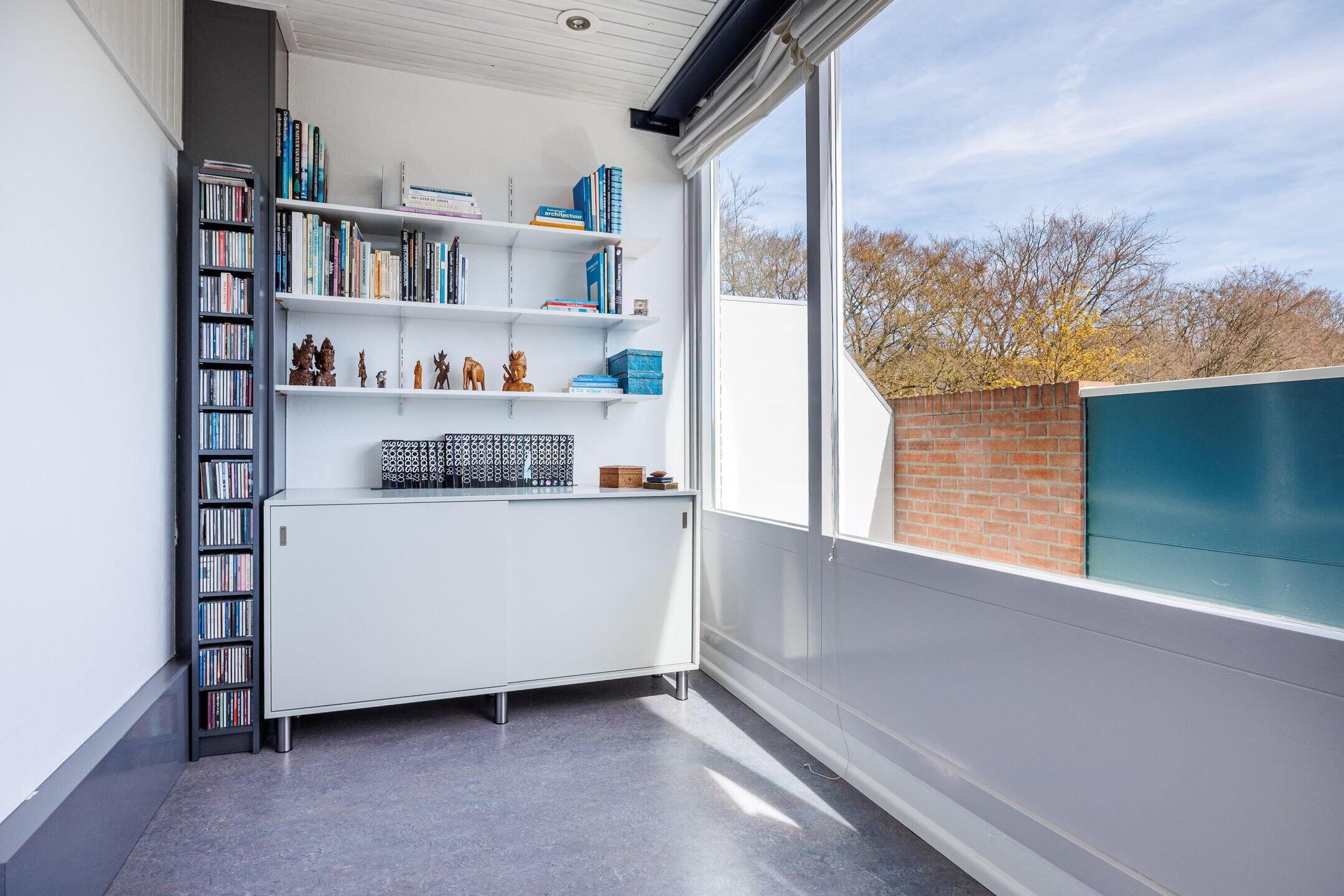 De tweede verdieping is er een overloop en via een royale inloopkamer met kasten bereik je de ruimte die momenteel in gebruik is als kantoor/atelier, maar ook gebruikt kan worden als de master-bedroom, welke beschikt over een balkon met uitzicht richting de bossen – een fijne plek om de dag rustig te beginnen.